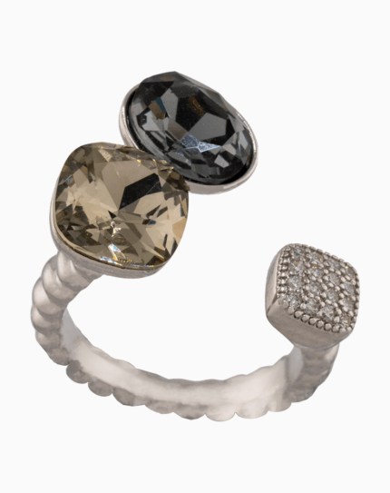انگشتر مدل “روزالیا” از برند شوکا، یک قطعه هنری با چیدمان نامتقارن از کریستالهای صورتی در دو تناژ مختلف، نگین درخشان و یک مروارید ظریف است. این انگشتر با پایه نقرهای رنگ و طراحی قابل تنظیم، جلوهای شیک و منحصربهفرد به استایل شما میبخشد.