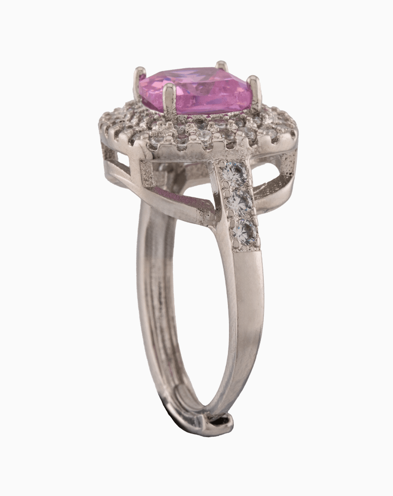انگشتر زنانه شوکا طرح هاله دو ردیفه با نگین صورتی- نقرهای