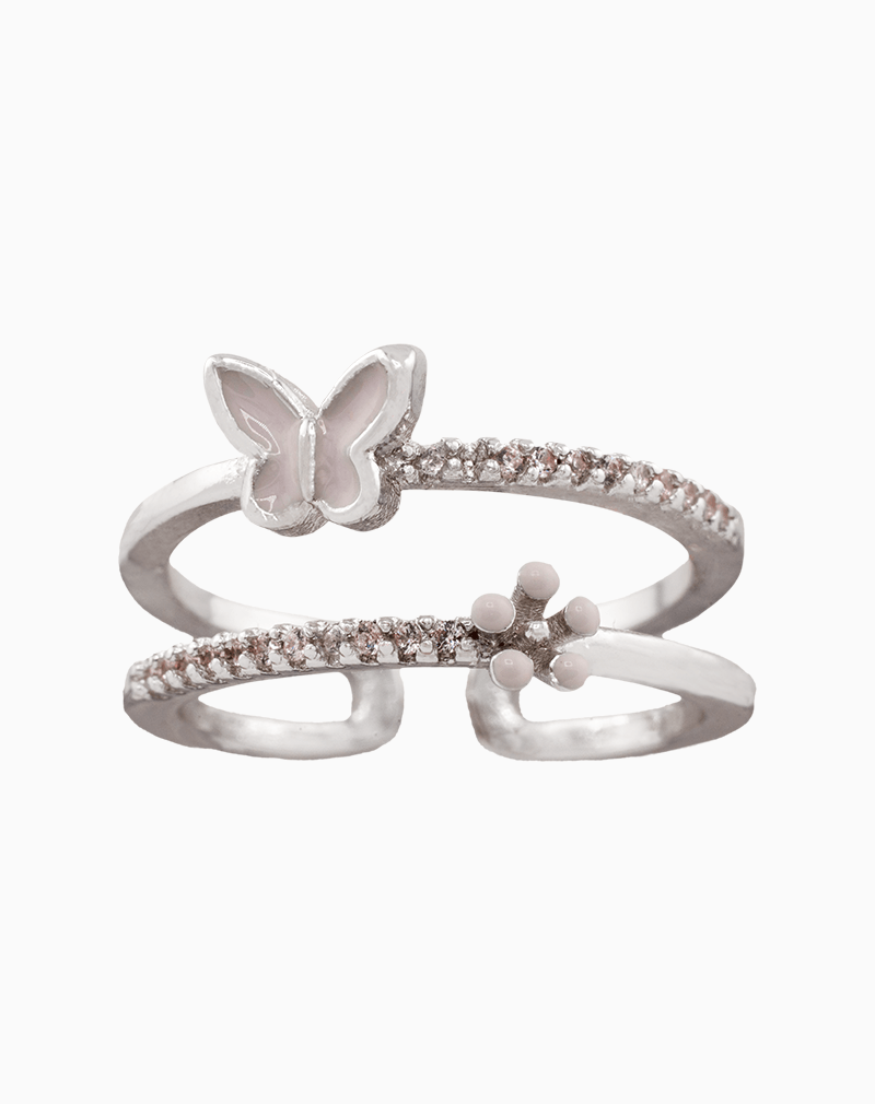 انگشتر زنانه شوکا طرح پروانه و شکوفه – نقرهای