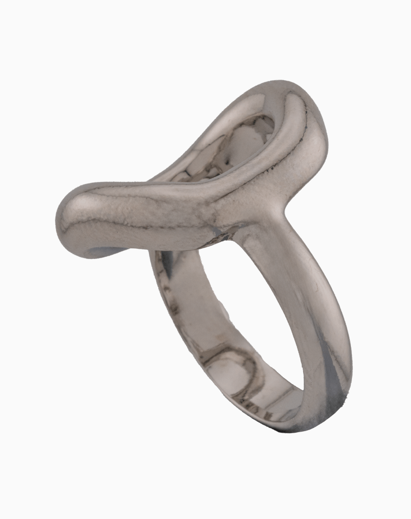 یک اثر هنری مدرن بر دستان شما! انگشتر حجیم و جسورانه شوکا با طرح گره آزاد و فرمی انتزاعی. آبکاری نقره‌ای مات، فری‌سایز و ایده‌آل برای خلق استایلی متمایز.