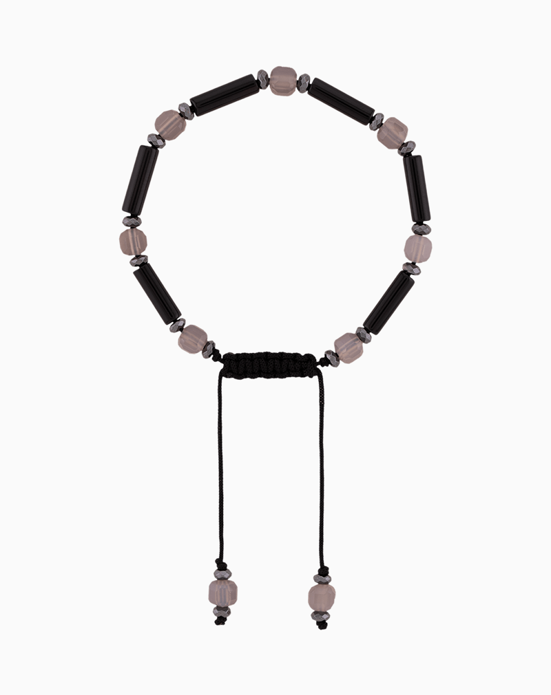تجلی زیبایی در سادگی. دستبند زنانه شوکا با طراحی مینیمال و مدرن، ترکیبی از مهره‌های لوله‌ای اونیکس و کریستال‌های دودی تراش‌خورده است که استایلی شیک و امروزی را برای شما به ارمغان می‌آورد.