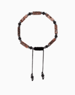 در کنار این سنگ پرانرژی، مهرههای تراشخورده ابسیدین مشکی و واشرهای هماتیت نوکمدادی قرار گرفتهاند تا با ایجاد تضاد، زیبایی الگوهای عقیق را برجستهتر کنند. قفل کشویی قابل تنظیم این دستبند، راحتی و تناسب ایدهآل را برای هر سایز مچی فراهم میکند. این دستبند انتخابی فوقالعاده برای بانویی است که جسارت بیان شخصیت خود از طریق اکسسوریهای خاص و پرانرژی را دارد.