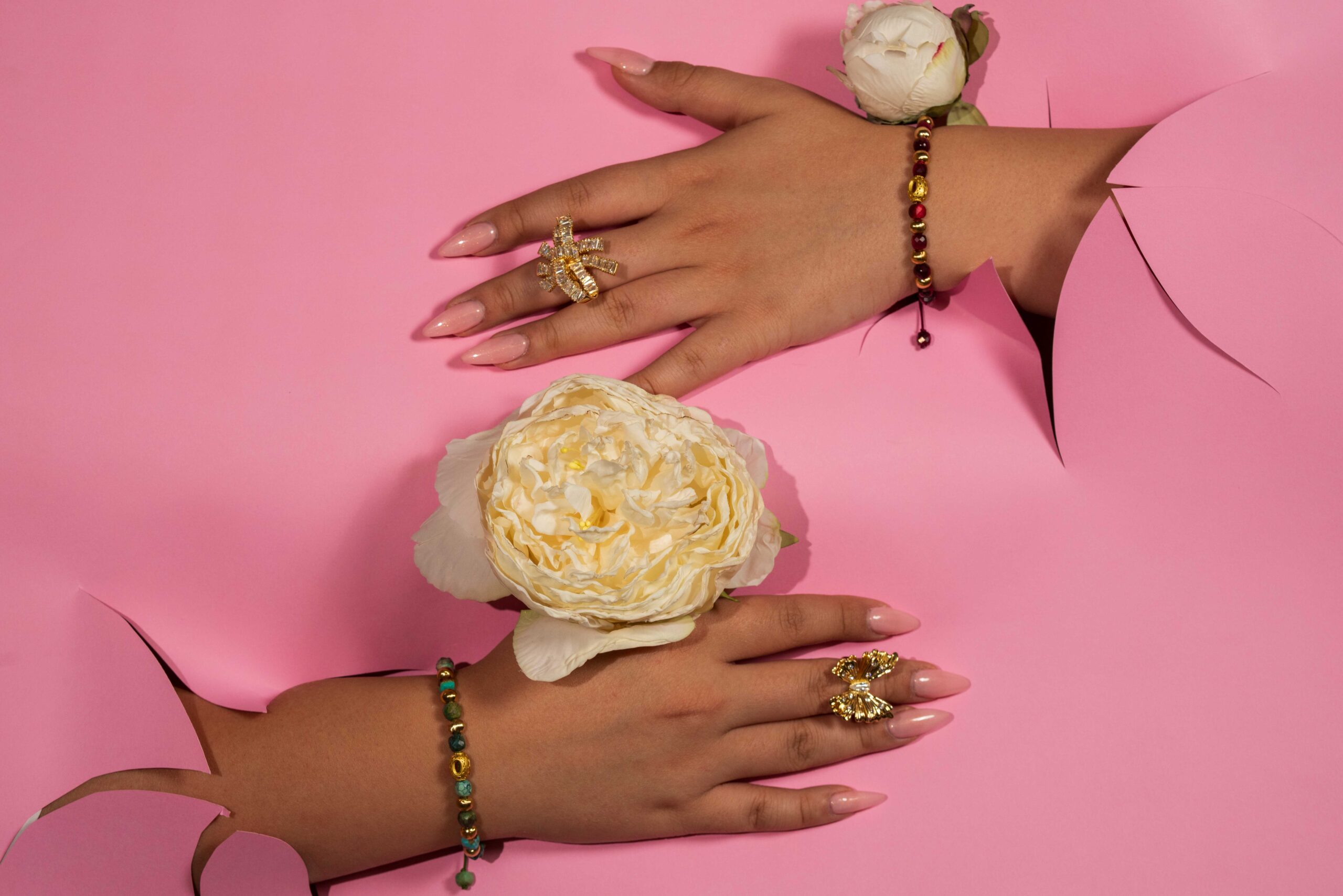 انرژی و زیبایی را با این دستبند دستساز به دستان خود هدیه دهید. ترکیبی چشمنواز از سنگ طبیعی جاسپر صورتی با رنگ زرشکی گرم و مهرههای طلایی درخشان.