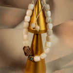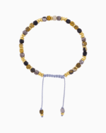 دستبندی ظریف و هنرمندانه با طیف رنگهای گرم و خاکی سنگ آگات. این اکسسوری مینیمال، با مهرههای طلایی درخشان و بافت طوسی روشن، حسی از طبیعت و آرامش را به استایل روزمره شما میآورد.