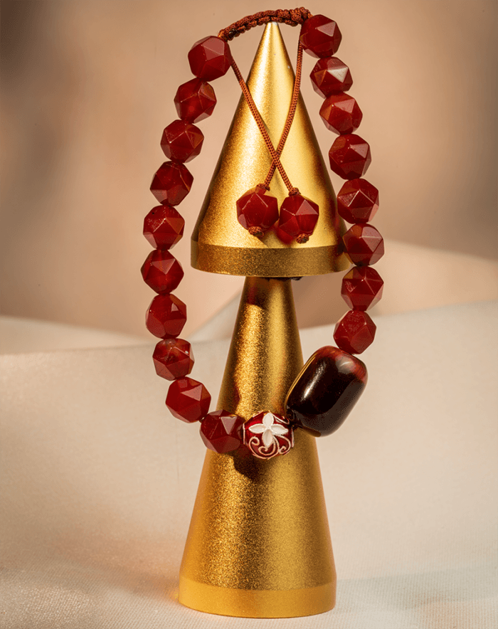 دستبند سنگ عقیق سرخ تراشخورده شوکا با مهره اسلیمی