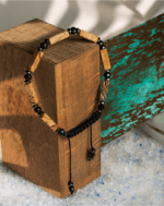 واشرهای هماتیت به رنگ نوکمدادی، جلوهای صنعتی و مردانه به دستبند اضافه میکنند و آن را به قطعهای بینقص برای استایلهای روزمره، کژوال و حتی بوهمین تبدیل میکنند. این دستبند با قفل کشویی قابل تنظیم، راحتی و تناسب کامل را تضمین میکند و میتواند به عنوان یک ست زوج با نسخه زنانه خود، نمادی از پیوند و هماهنگی باشد.