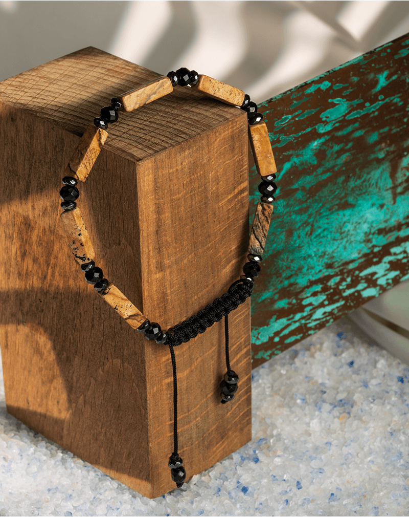 دستبند مردانه سنگ جاسپر و ابسیدین شوکا