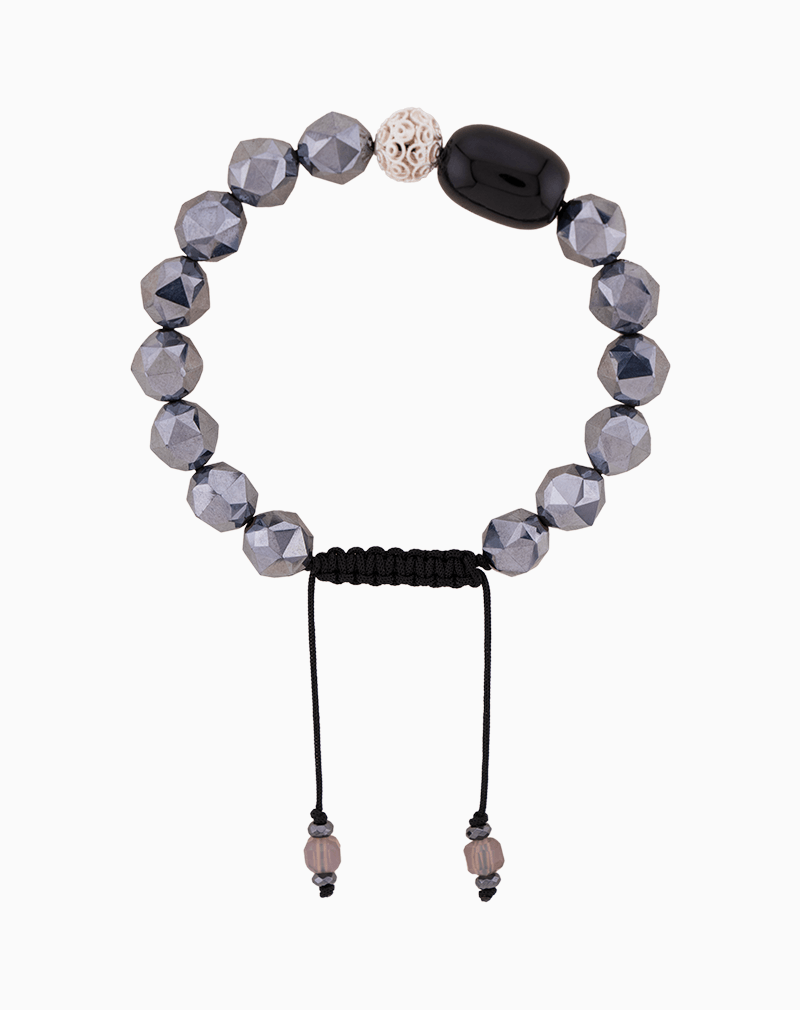 دستبند مردانه سنگ حدید و اونیکس با گوی حکاکیشده شوکا