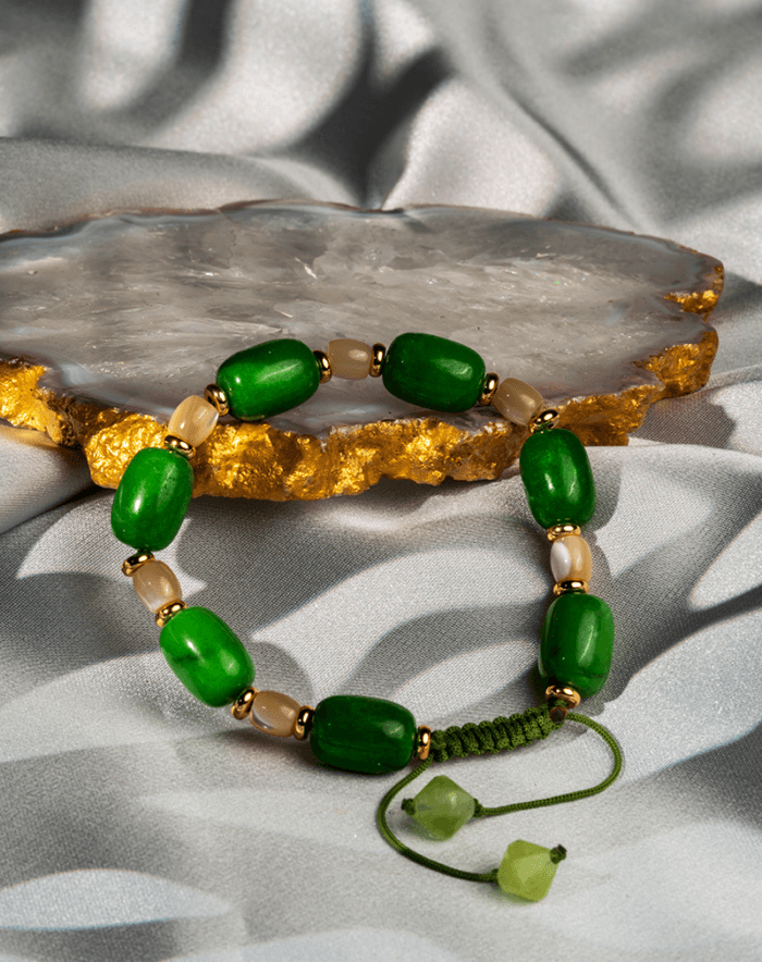 یک اکسسوری مردانه با الهام از آرامش طبیعت. دستبند مردانه شوکا با ترکیب سنگ سرپانتین سبز و صدف طبیعی، انتخابی ایدهآل برای مردانی که به دنبال استایلی خاص و معنادار هستند.