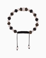 این دستبند مردانه نفیس از برند شوکا، برای آقایانی طراحی شده که به دنبال اکسسوریهای قدرتمند و کلاسیک هستند. در این طرح، مهرههای تراشخورده سنگ ابسیدین با درخشش خاص و اسرارآمیز خود، در کنار مهرههای مشکی مات و عمیق اونیکس قرار گرفتهاند. این ترکیب، تضادی جذاب بین نور و تاریکی ایجاد میکند. گویهای فلزی با روکش نقرهای مات و یک مهره مرکزی نگینکاری شده، این تضاد را به تعادل رسانده و به دستبند جلوهای مدرن و لوکس میبخشند.<br><br>قفل دستبند از نوع بافت مکرومه به رنگ مشکی است که هماهنگی بینقصی با کل طرح دارد و امکان تنظیم آسان سایز را برای هر مچی فراهم میکند. انتهای بندها با مهرههای مروارید نما تزئین شده است. سنگ ابسیدین به عنوان سپر محافظ در برابر انرژیهای منفی و سنگ اونیکس به عنوان نماد قدرت و استقامت شناخته میشوند، که این دستبند را به انتخابی ایدهآل برای افزایش تمرکز و اعتماد به نفس در موقعیتهای مهم تبدیل میکند.