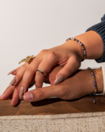 دستبندی چشمنواز و ظریف با سنگ کمیاب و زیبای چاروئیت. رگههای ابریشمی و طیف رنگی بنفش و یاسی در کنار درخشش مهرههای طلایی، این دستبند را به یک انتخاب خاص و هنرمندانه برای استایل شما تبدیل کرده است.
