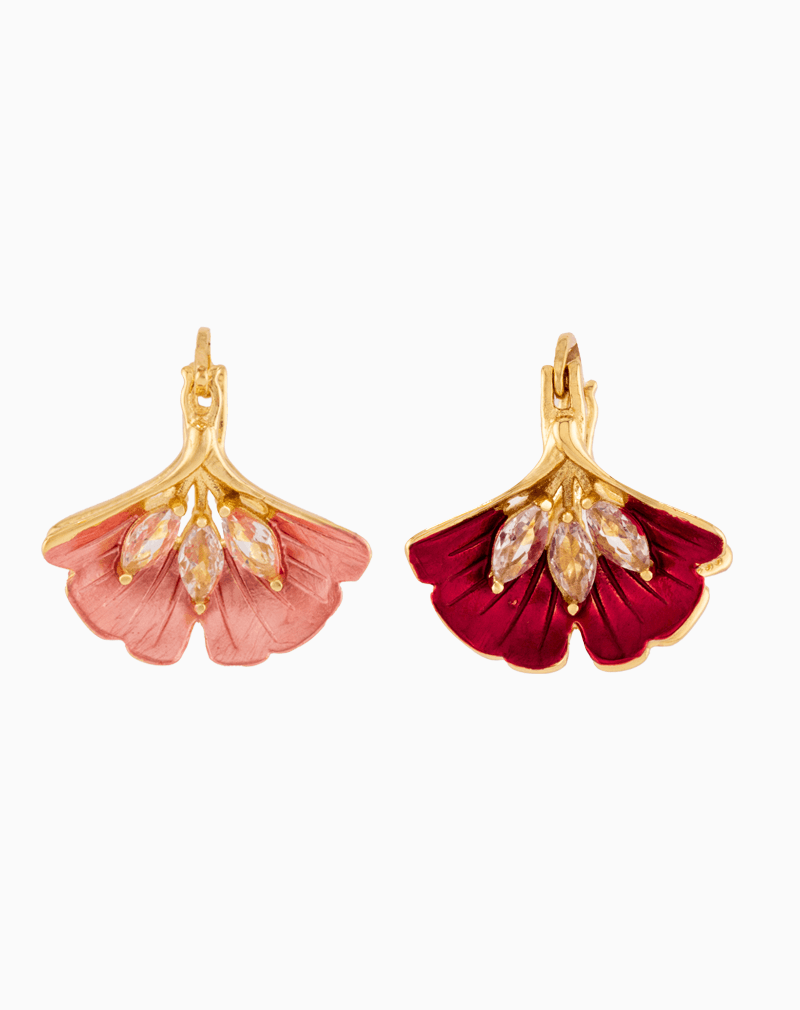 گوشواره آویزی گلبرگ دو رنگ صورتی و قرمز با نگین کریستالی