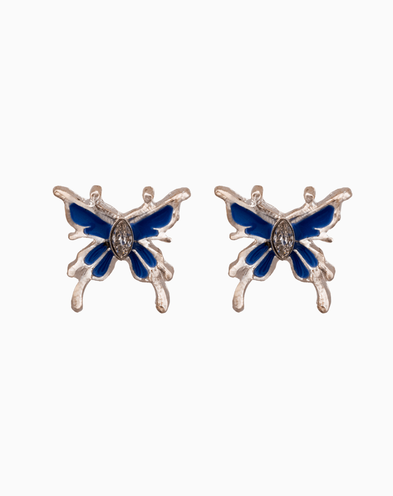 گوشواره میخی شوکا طرح پروانه میناکاری آبی