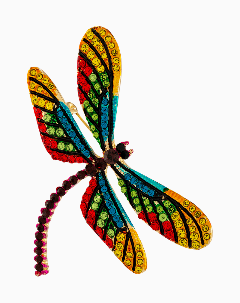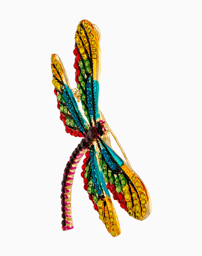 درخشش رنگینکمان بر روی لباس شما! سنجاق سینه طرح سنجاقک با کریستالهای رنگارنگ و آبکاری طلا. اکسسوری بینظیر برای افزودن رنگ و جلوه به استایل شما.