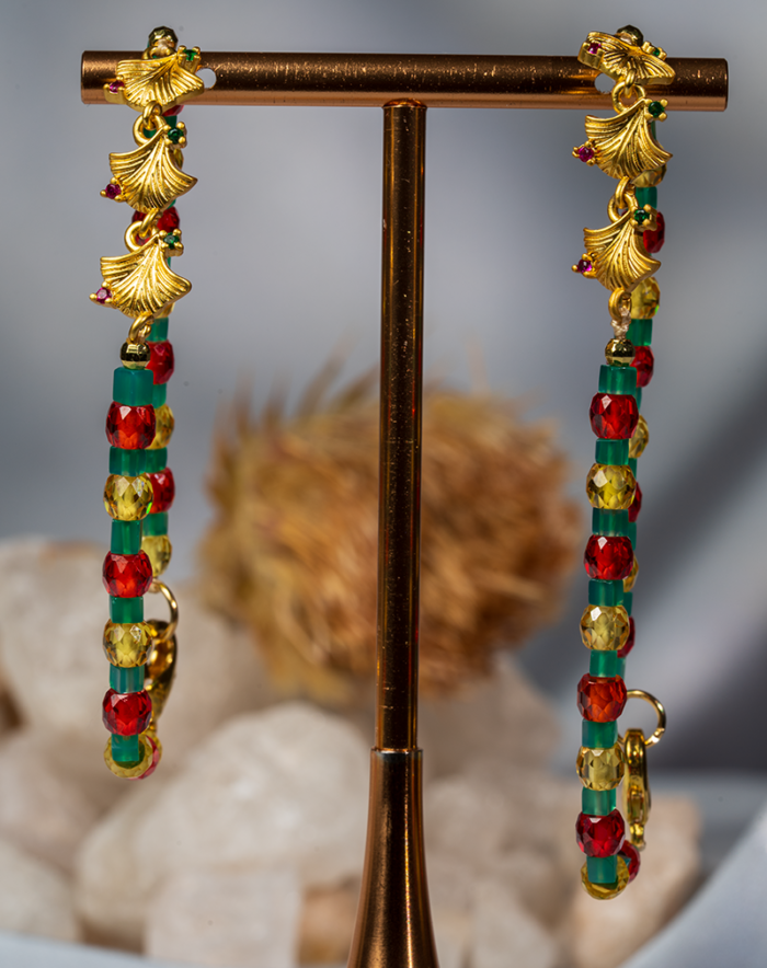 دستبند مهرهای نوجوان شوکا با مهرههای مصنوعی سبز، قرمز و طلایی و آویزهای برگ طلایی. طراحی رنگی و پرانرژی این دستبند، انتخابی عالی برای استایل روزمره نوجوانان و هدیهای خاص و متفاوت است.