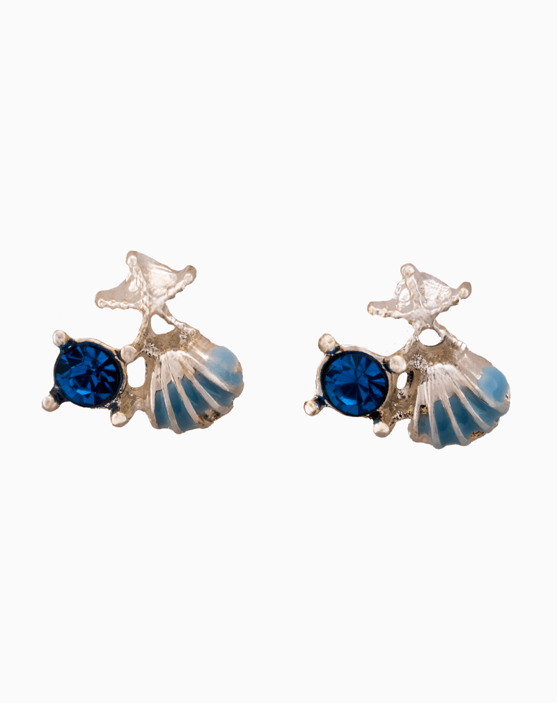حس و حال دریا را با خود همراه کنید! گوشوارههای میخی فانتزی با طرحی جذاب از صدف میناکاریشده، ستاره دریایی و یک نگین کریستالی آبی درخشان. اکسسوریای عالی برای استایلهای تابستانی و کژوال شما.