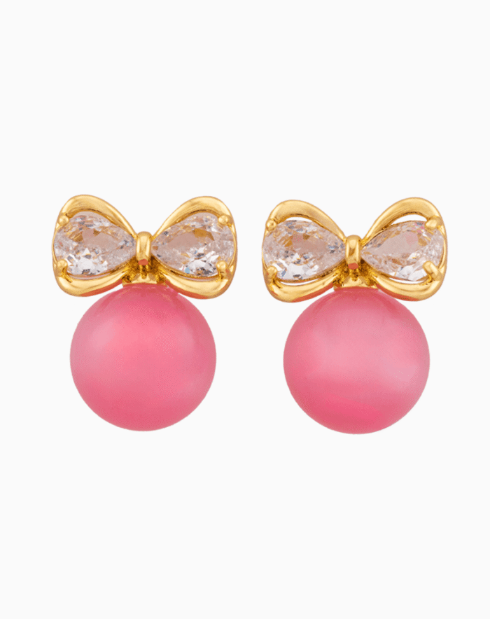 گوشواره پاپیونی با نگین اشکی و سنگ صورتی