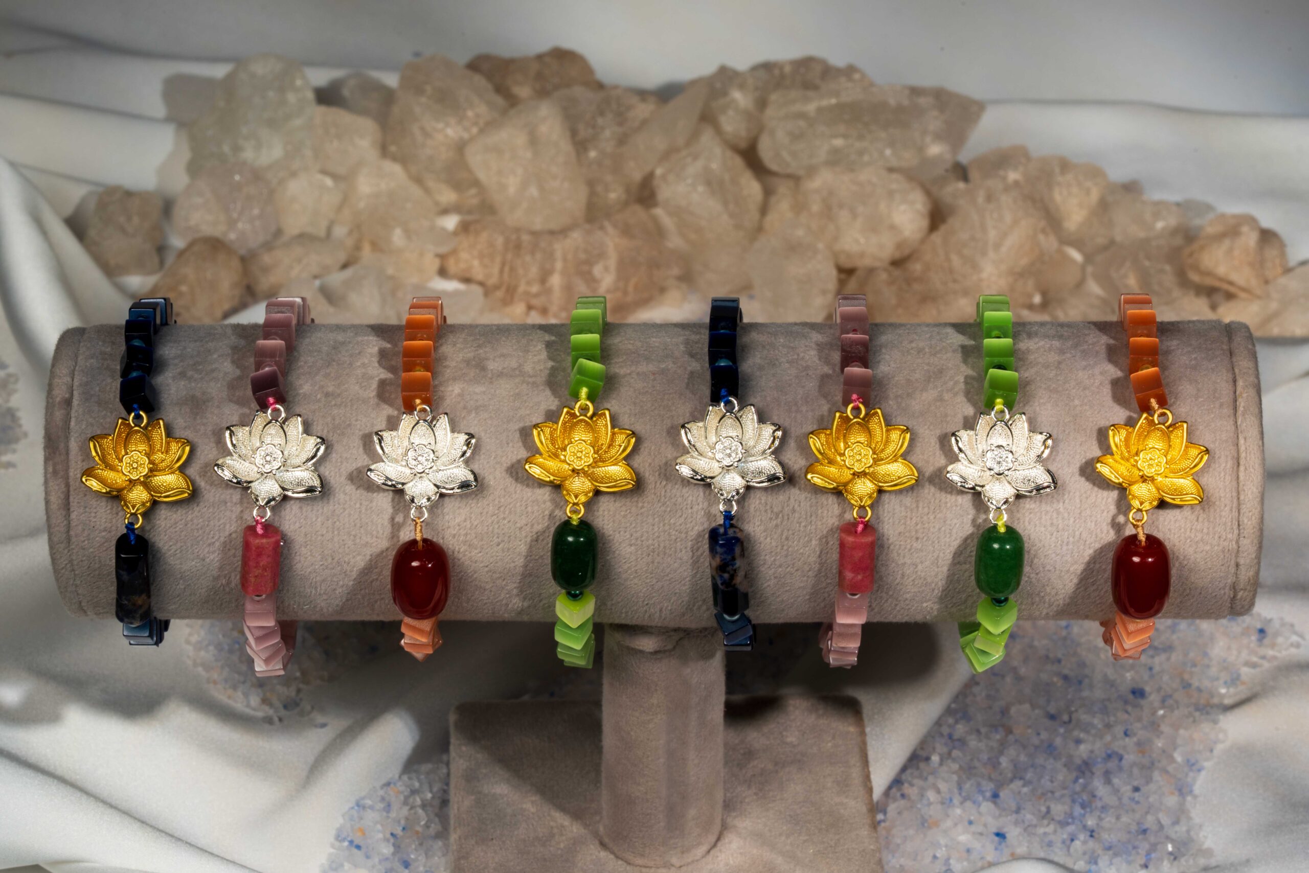 یشم سنگی نماد تعادل، خوششانسی و انرژی مثبت است و در کنار نماد لوتوس، مفهومی از رشد درونی و آرامش ذهنی را منتقل میکند.