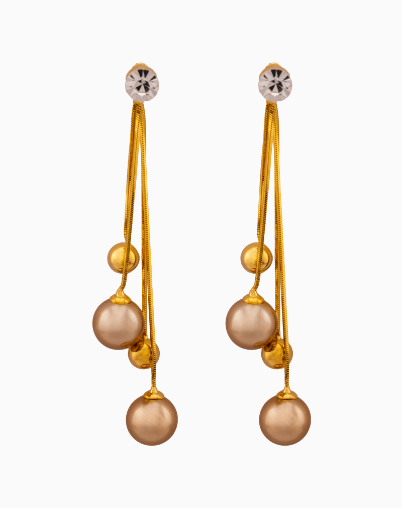 گوشواره آویز زنانه شوکا مدل مروارید بژ و گوی طلایی