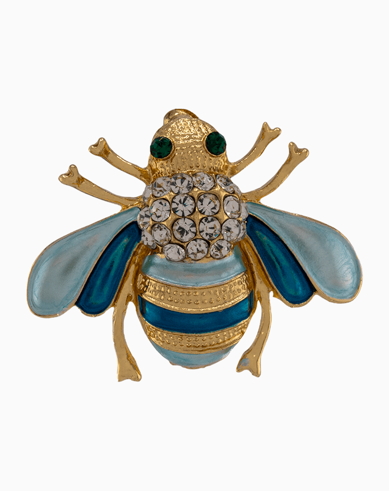 سنجاق سینه شوکا طرح زنبور با میناکاری آبی و نگین سبز
