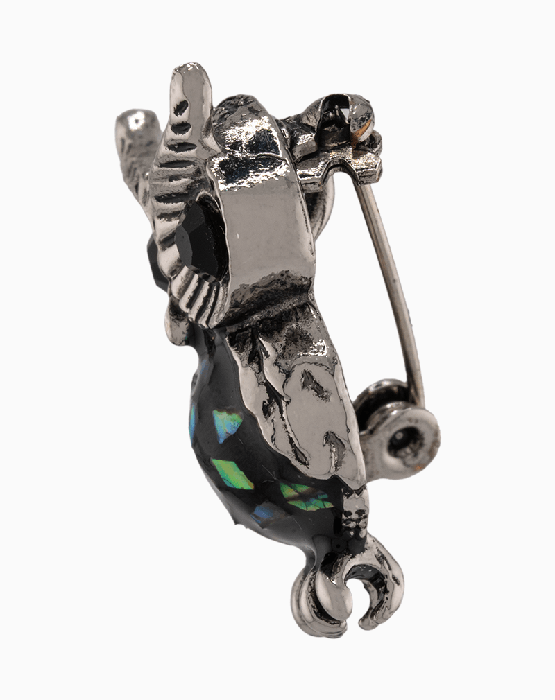 سنجاق سینه جغد شوکا، اکسسوریای مرموز و گیرا با استایل وینتیج. این سنجاق سینه با آبکاری نقرهای دودی، چشمهای کریستالی مشکی و بدنهای درخشان با تکههای صدف هفترنگ، انتخابی بینظیر برای افزودن شخصیتی خاص به پوشش شماست.