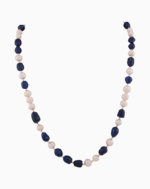 این ست شامل گردنبند، دستبند و گوشواره هماهنگ بوده و با طراحی پیچیده و ساخت دست‌ساز، جلوه‌ای بسیار ظریف و زنانه دارد. رنگ سرمه‌ای حس عمق و وقار را القا می‌کند و سفیدِ مروارید، نماد پاکی و لطافت است؛ ترکیبی ایده‌آل برای مهمانی‌های رسمی، مراسم خاص و هدیه‌های ارزشمند.
