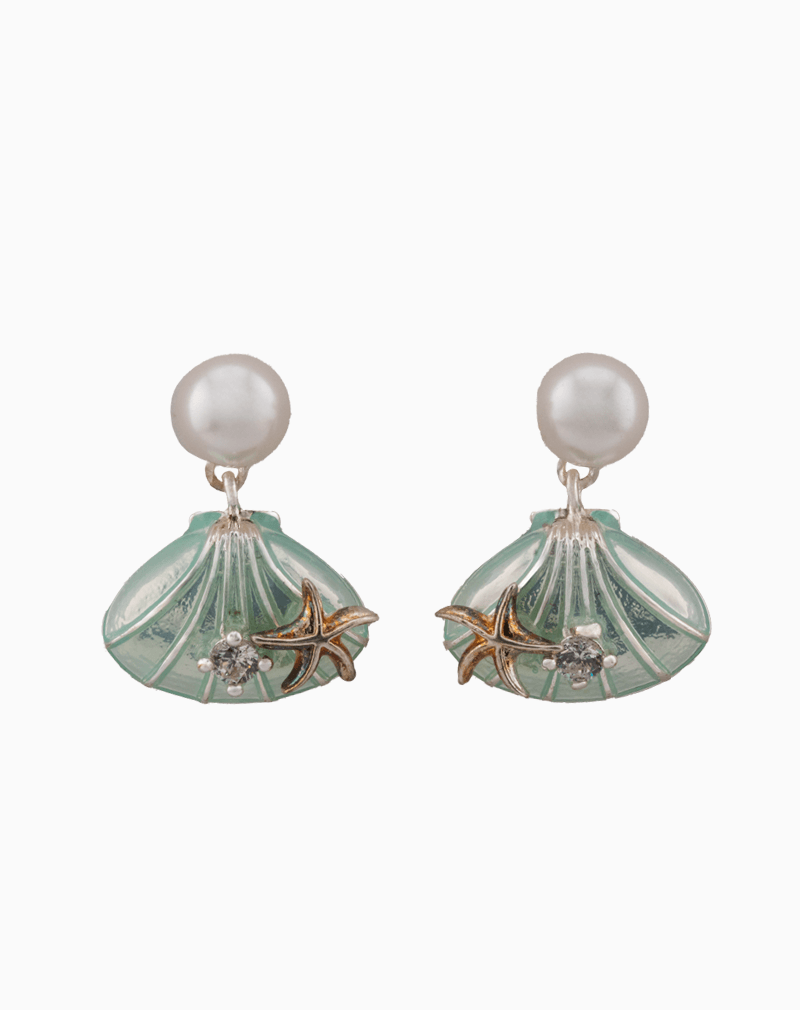 طراحی ترکیبی مروارید و آویز, طرح صدف میناکاری شده, تزئینات ظریف ستاره دریایی و نگین |