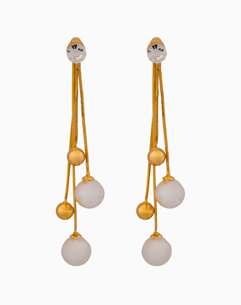 گوشواره آویز زنانه شوکا مدل مروارید سفید و گوی طلایی