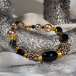 مرواریدهای صدفی و مهرههای طلایی جداکننده، حس لطافت و شکوه را به آن افزودهاند.