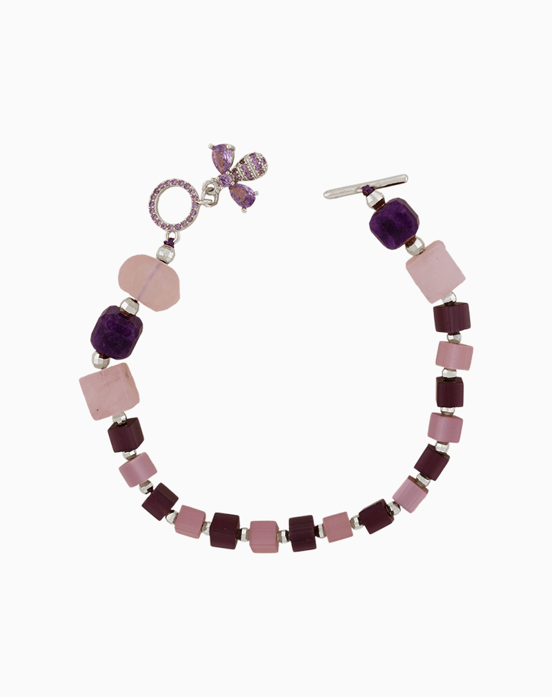 دستبند زنانه شوکا مدل کوارتز صورتی و آمتیست دستساز