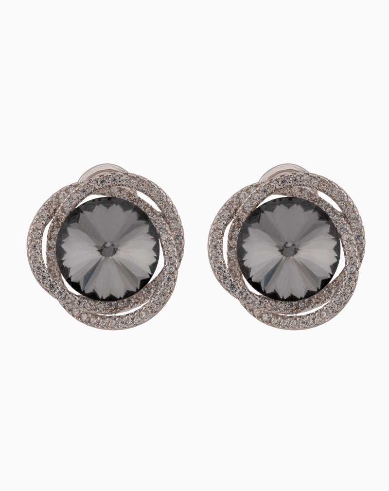 گوشوارههای لوکس شوکا با آبکاری نقره و کریستال بزرگ تراشخورده به رنگ دودی، که در میان حلقههای درخشان نگینکاری شده قرار گرفته است. انتخابی بینظیر برای درخشش در مراسم و مهمانیهای خاص.