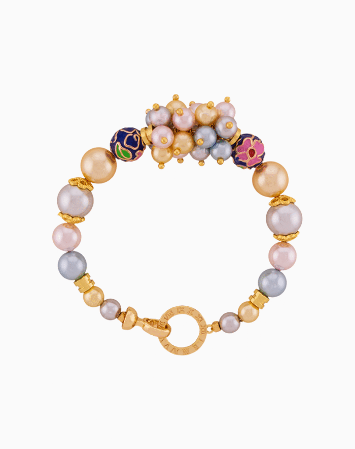 این دستبند از مجموعه دستساز شوکا با استفاده از مرواریدهای مصنوعی رنگی و مهرههای لعابی طراحی شده است. ترکیب رنگهای آرام مثل صورتی، هلویی و صدفی حالتی لطیف و زنانه ایجاد میکند. خوشه مرکزی چندتایی و اتصالات طلایی ضدحساسیت، کیفیت نهایی محصول را بالا برده است. گزینهای عالی برای ستهای رسمی سبک و هدیههای خاص.