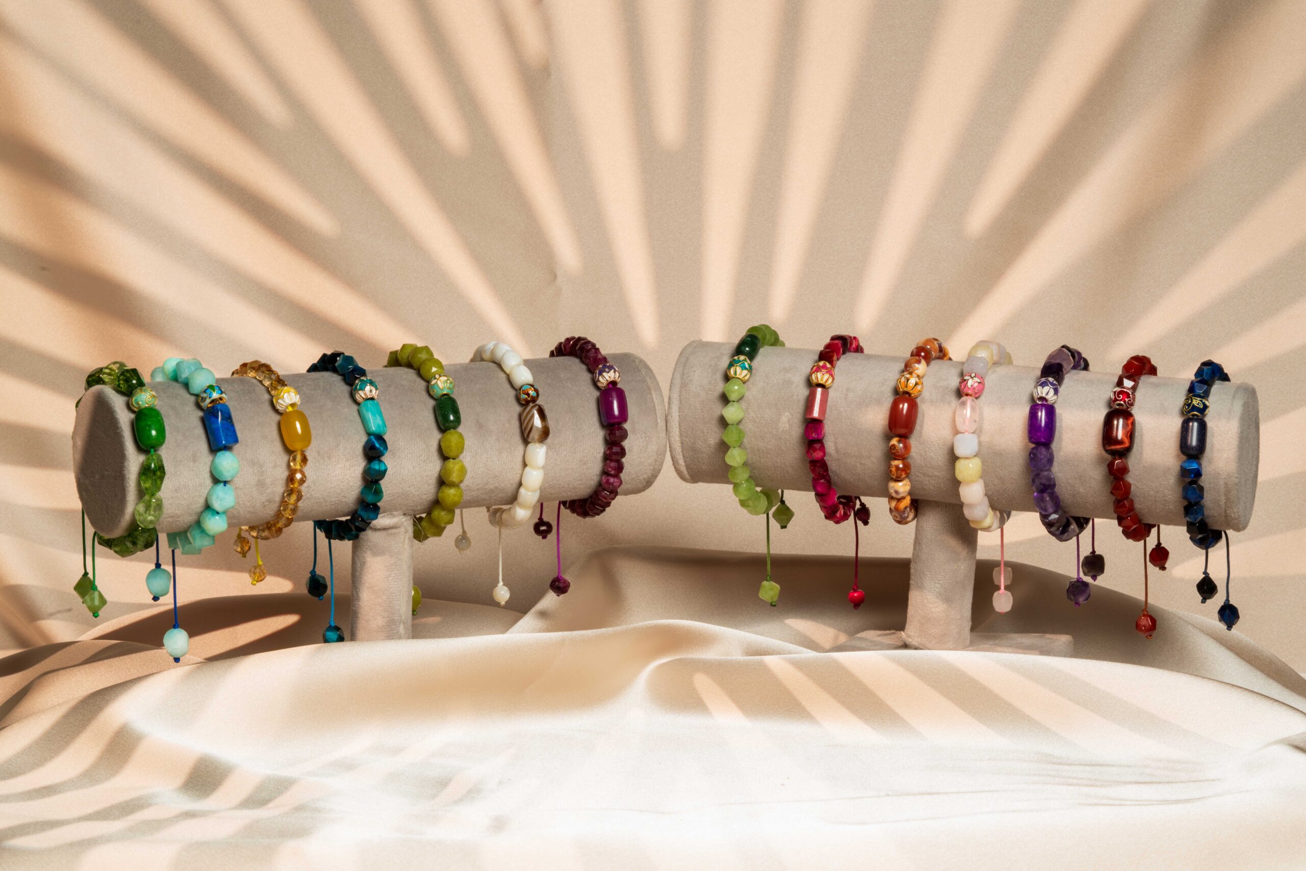 دستبند زنانه مهره‌ای سبز با مهره تزئینی شوکا