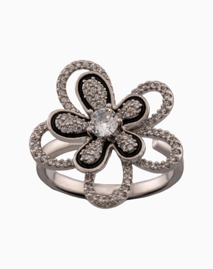 هنر و ظرافت در قالب یک گل کاملیا. این انگشتر فری سایز باشکوه از برند شوکا، با طراحی سهبعدی، نگینکاری میکرو-پیو و جزئیات میناکاری مشکی، تعریف جدیدی از یک اکسسوری لوکس ارائه میدهد.