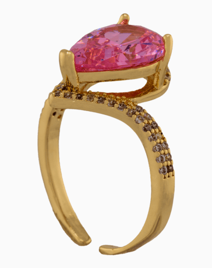 ظرافت و عشق در یک انگشتر. این انگشتر فری سایز شوکا با سنگ کریستالی اشک به رنگ صورتی درخشان و رکاب نامتقارن مزین به نگین، انتخابی مدرن و رمانتیک برای هر لحظه است.